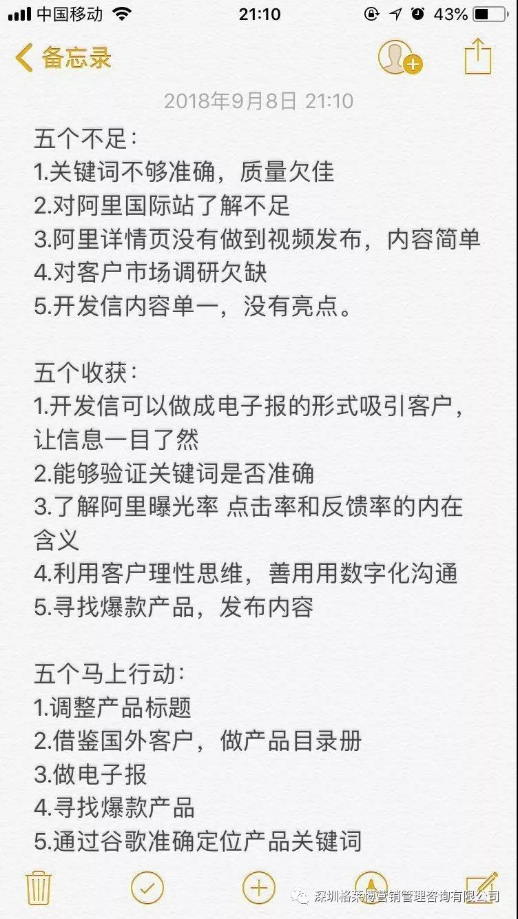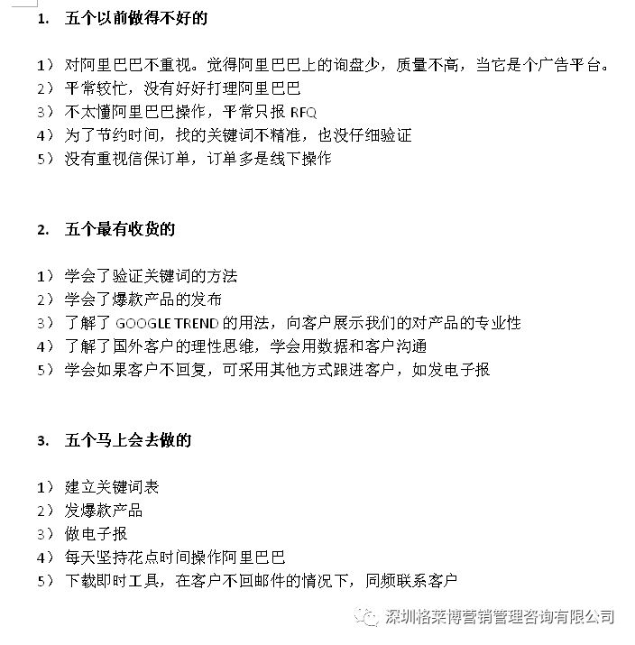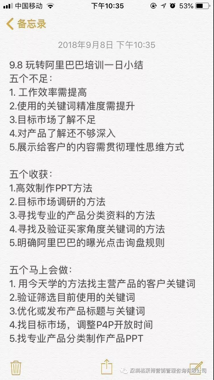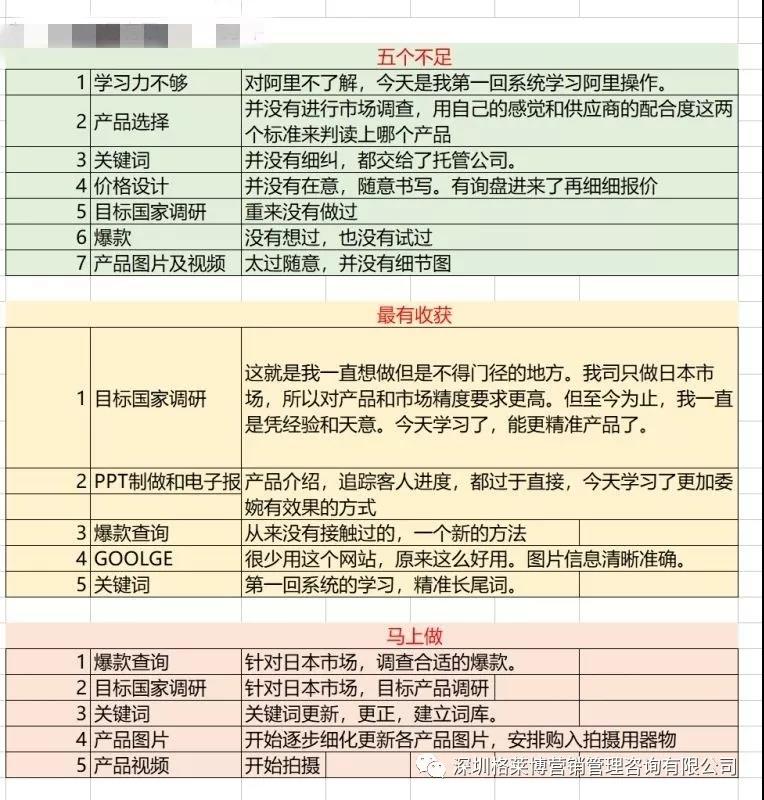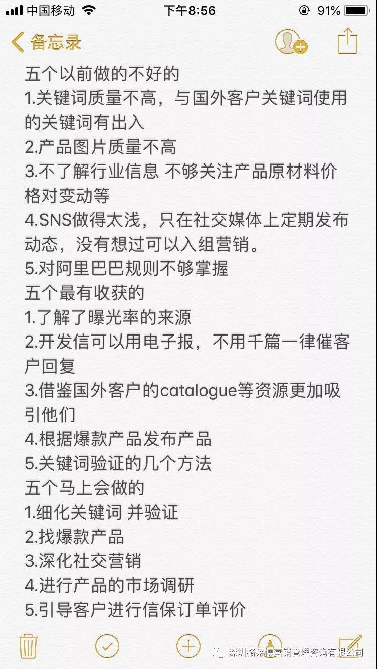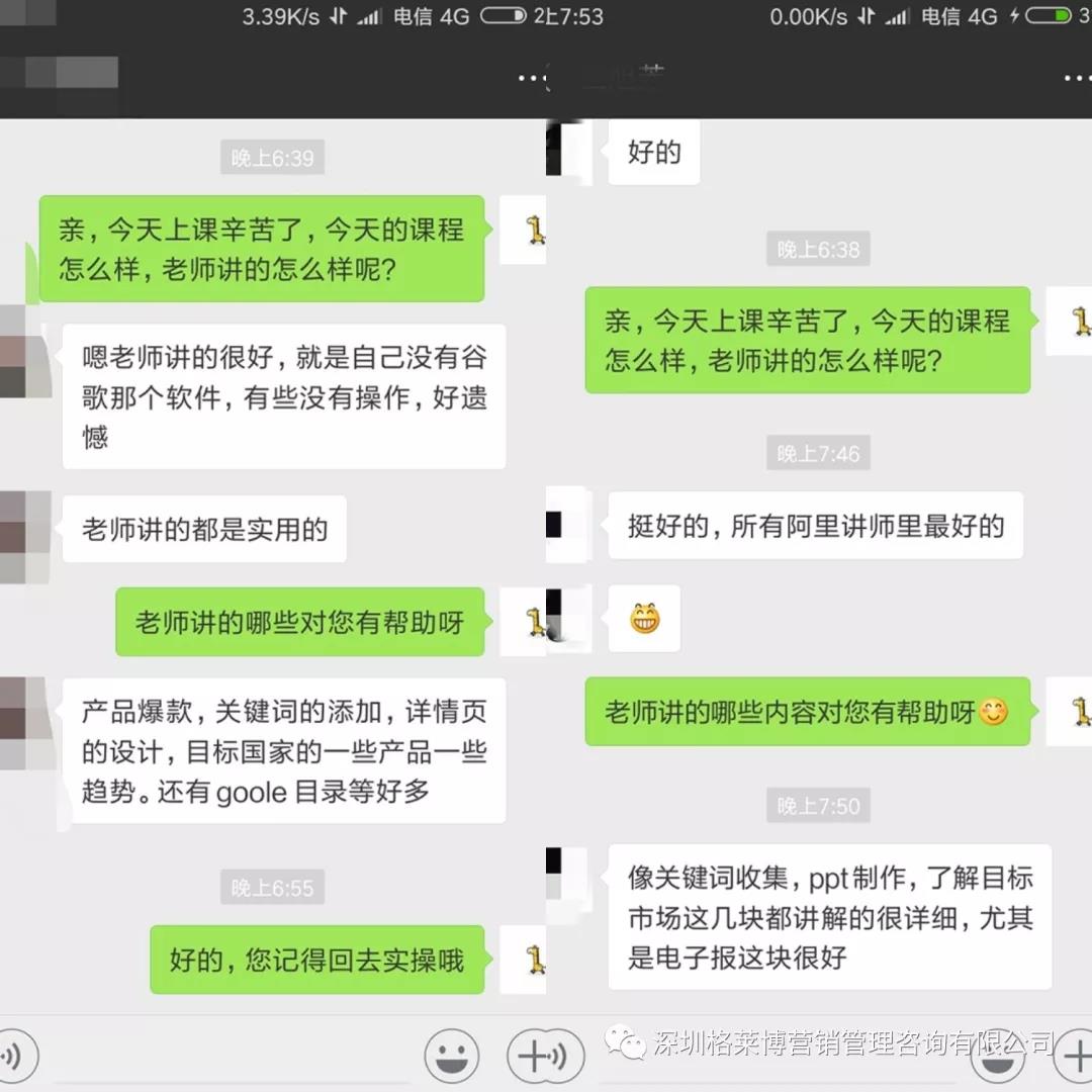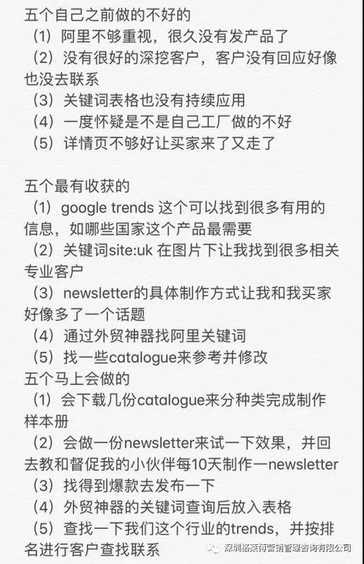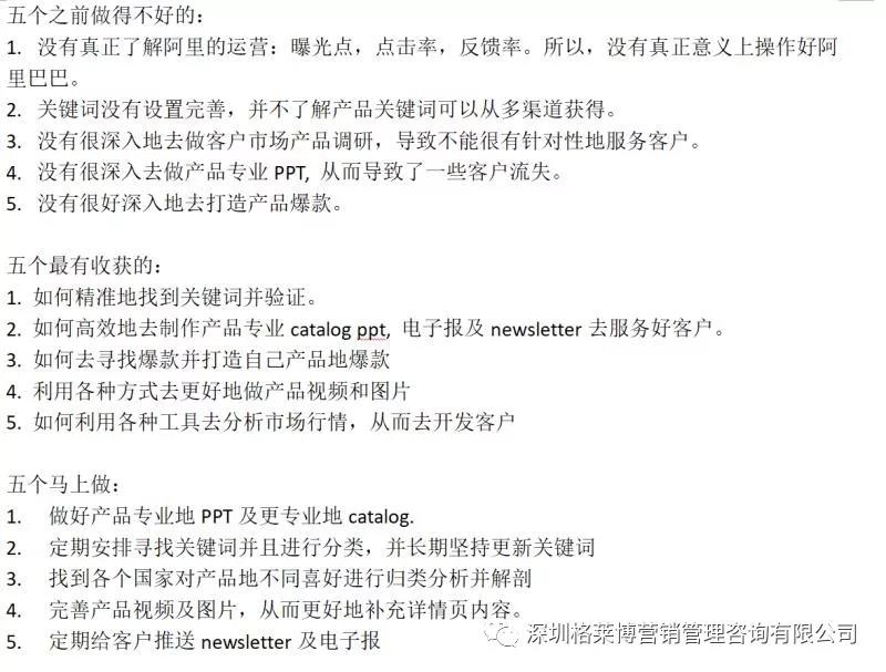 还有学员表示听完老师讲的3个5内容,不仅能够学到以前不懂的知识,而且也发现了自己存在哪些不足,并更加明确当下应该马上去做的事情,比如之前不够重视阿里,听完老师的课现在开始重视了,也学到了更准确的关键词获取的方法,学会了如何高效率学习,少走弯路,一步一个脚印。外贸之路虽艰辛,但是能找到一个适合自己的方法,做起来便会事半功倍。