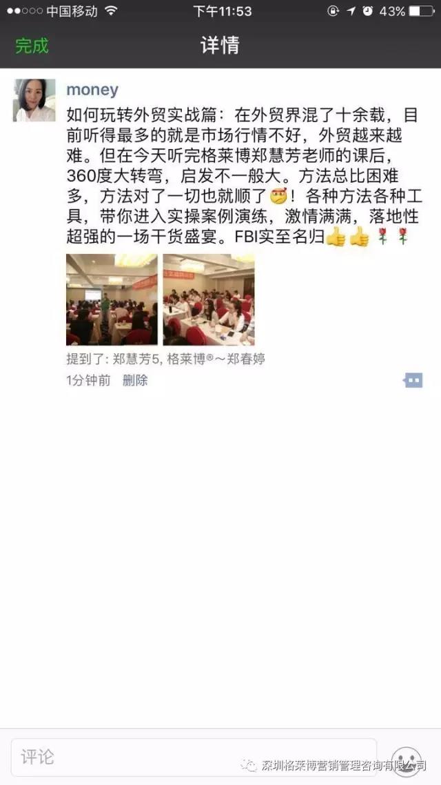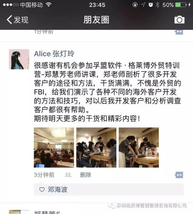 有学员表示都说外贸越来越难做,但是方法方法比困难多,方法很重要,郑老师的课真的实打实干货,满满的颠覆了以往的思维,重新认识了原来外贸可以这样做的,如何玩转外贸,没有FBI找不到的信息,只有你想不到的方法!