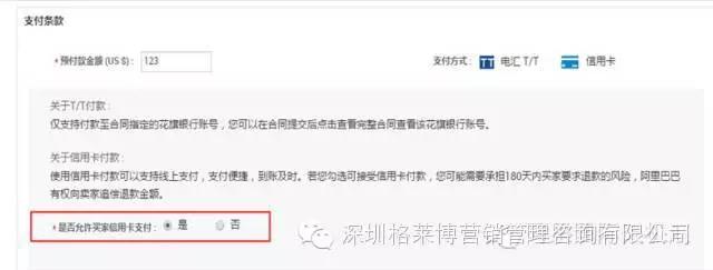1、卖家接受使用信用卡付款:起草信用保障订单时选择允许使用信用卡支付