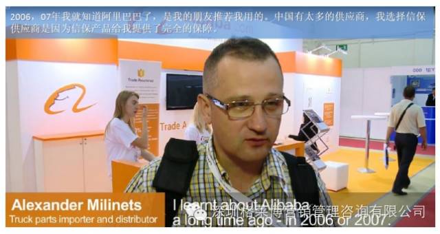 “我自己有过惨痛的跨境贸易经验,货不对版延期交货的时候,买家能拿到全额补偿这实在是太棒了。以前我不知道阿里巴巴,今天我知道了信用保障服务,我会选择从信保供应商采购。” --Alexey Shutov