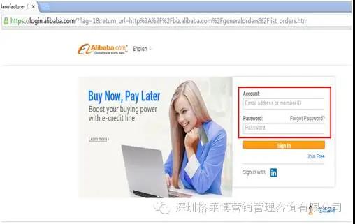买家点击该链接后,提示用阿里巴巴账号密码登录。登录后直接可以进入该订单的合同确认页面。点击确认后可以直接看到付款账号。