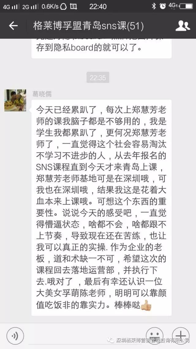 第一天课程结束后,大家纷纷晒出一天课程后的收获,点赞一直到晚上九点多都没停过,表示要庆幸自己做了一个正确的选择,把慧芳老师的三个课程,全部听完,等到下次青岛的展会课程,还要继续听。