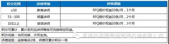 报名成为RFQ讲师,审核通过后线上线下的客户培训可以累积积分,兑换报价权益。