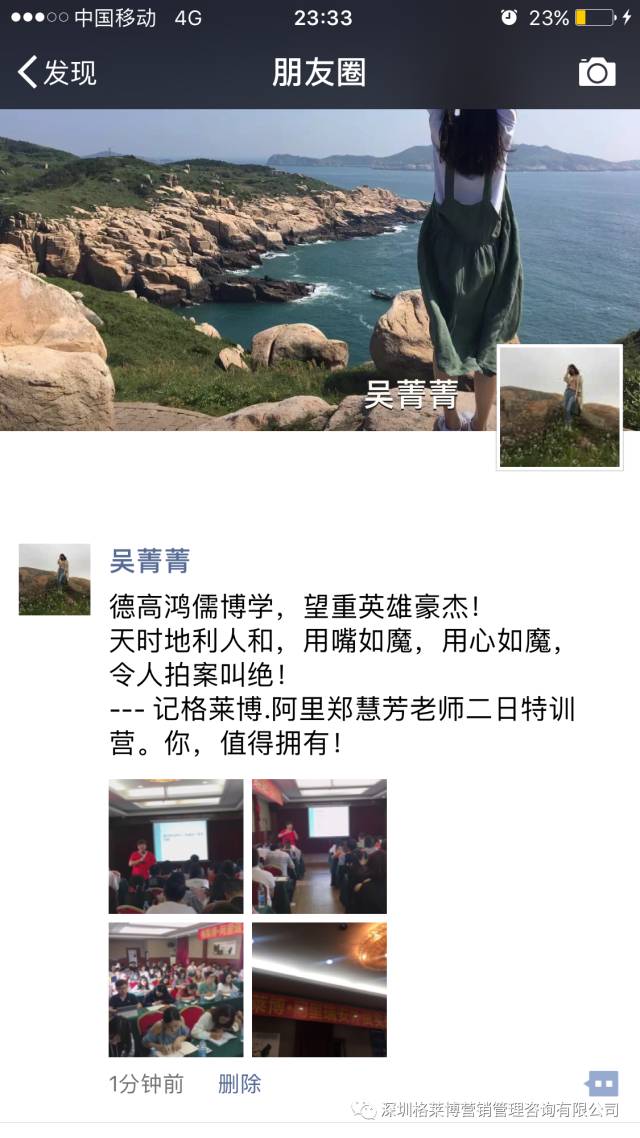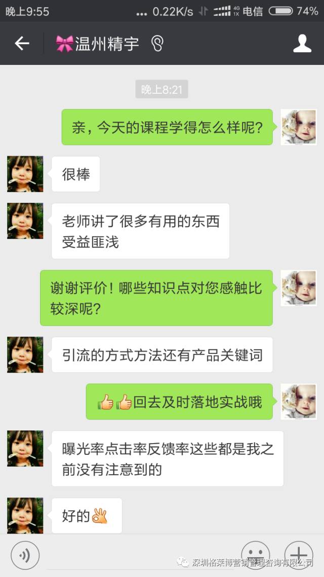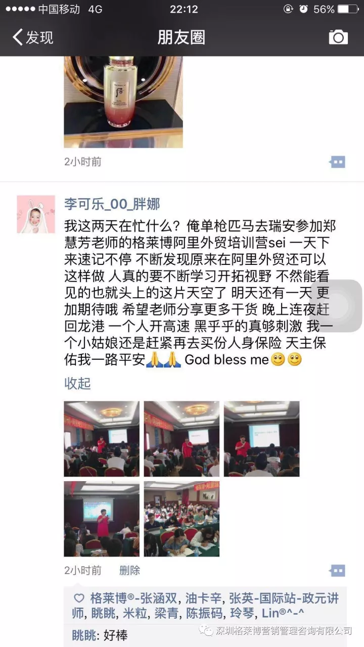 课程给大家的外贸世界打开了新的大门。学员说这是一个大数据的时代,B2B贸易模式要有新突破,必须寻找新方法。问问自己做了四五年外贸还是一成不变是什么原因?做了一两年外贸并事业有成想寻找新的营销思路的,有必要也可以听一下慧芳老师的课,鸡血满满回去,今年年底前再大干一场。