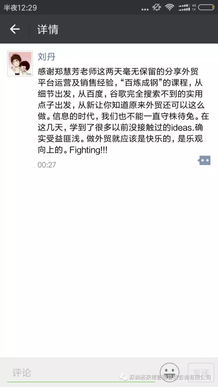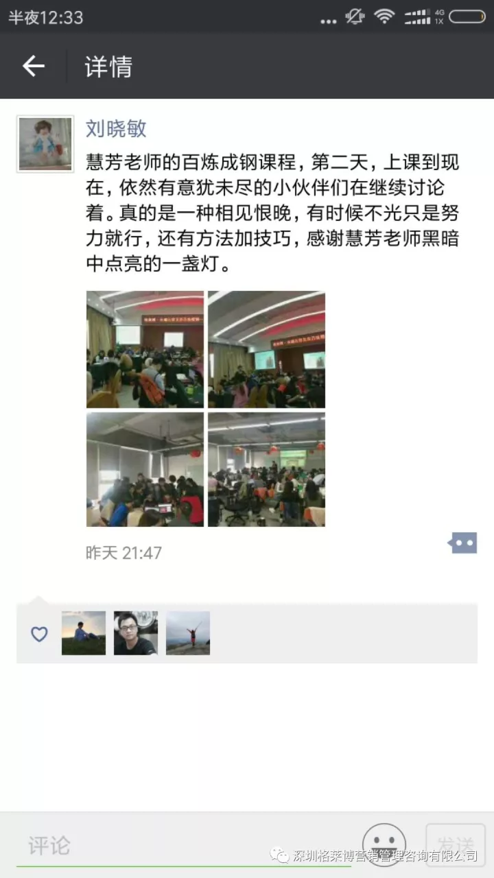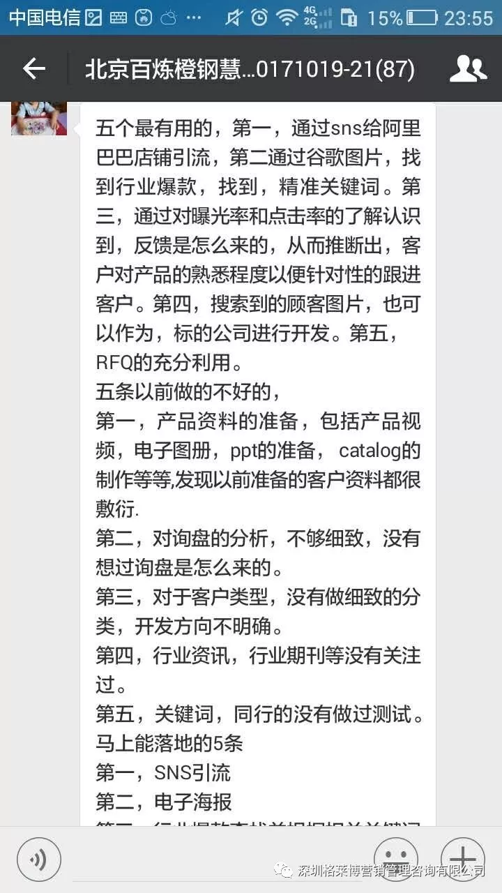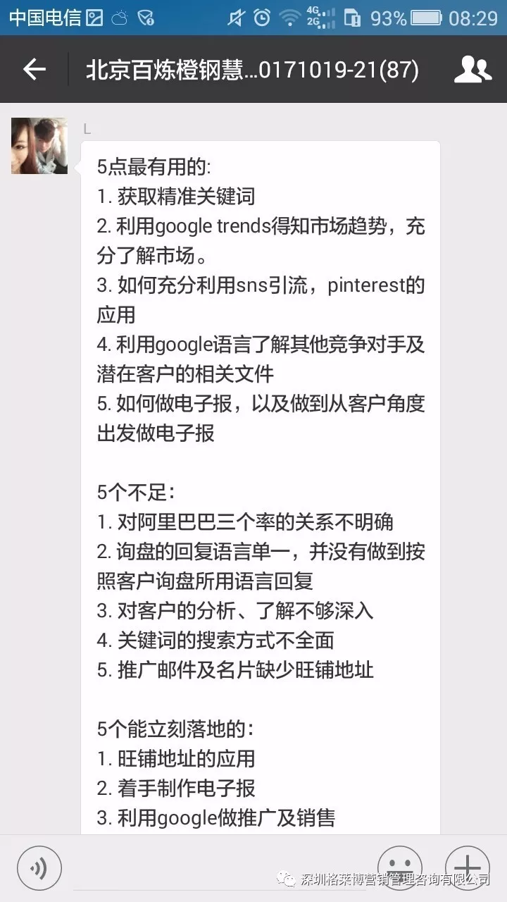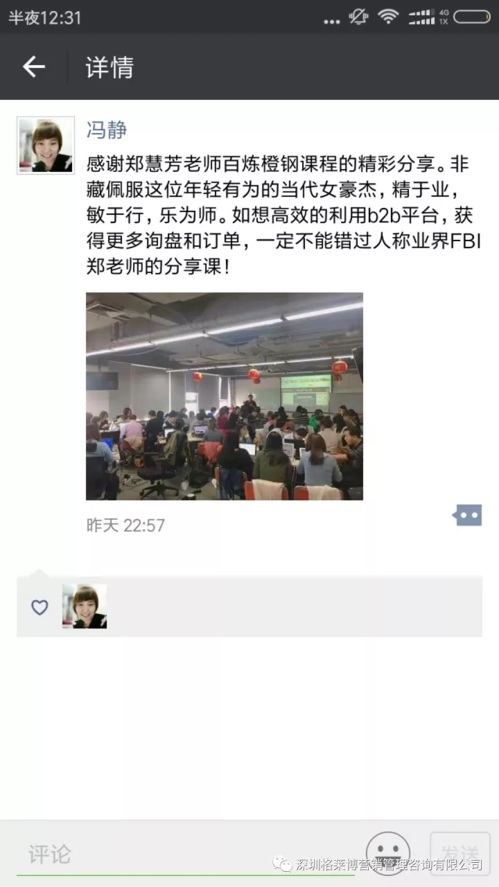 课程结束之后,学员们纷纷发来感想,感谢慧芳老师的干货分享!三天课程下来,同学辛苦了!希望你们回去按照郑老师讲的操作方法,好好落地,利用老师教的办法和操作进行实战,相信你们能拿下大订单!回来跟郑老师、同学们报喜。