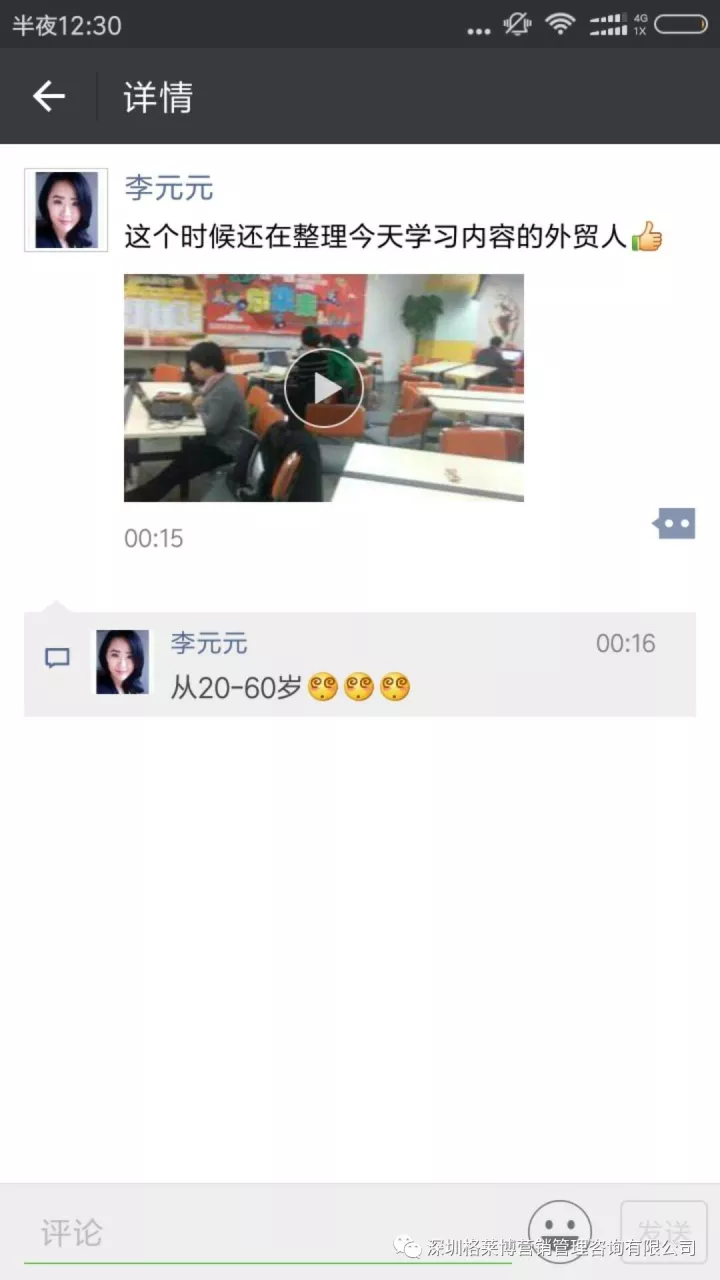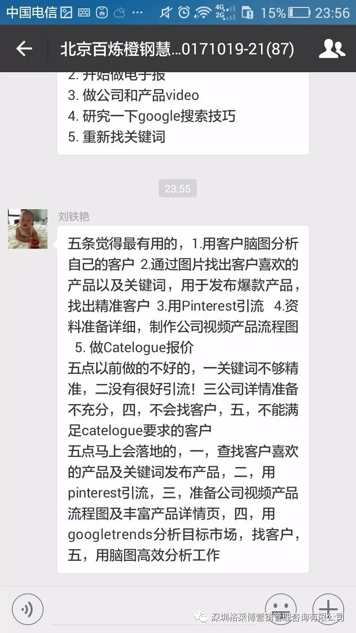 第一天的晚上,小伙伴们刷屏课程群,纷纷表达自己的感想。有学员半夜还在群里问问题、做作业的学员,凌晨一点还在做公司介绍视频,早上六点多还有学员在交课程的视频作业,看到这一幕小伙伴的心里感到很欣慰。必是拿大订单的外贸人。你们的努力,你们的付出,都是值得的。下面来看学员们第一天的课程的作业《谁是你的客户》