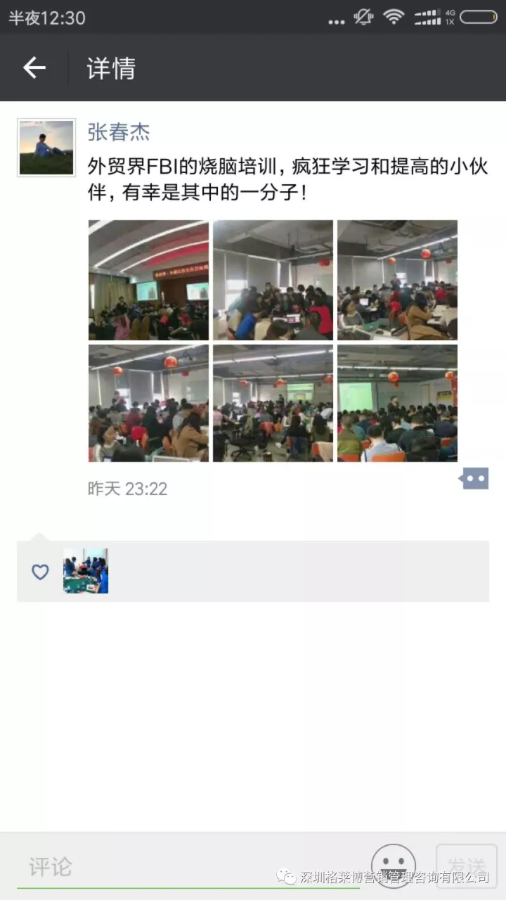 在大家的期待下格莱博•水滴石穿【北方大区北京区域 百炼橙钢-郑慧芳专场第一期】在北京国家广告产业园开课啦!你们很幸运,作为郑老师新推出课程的第一批学员,能够让你们在外贸路上走的更快更前喔!