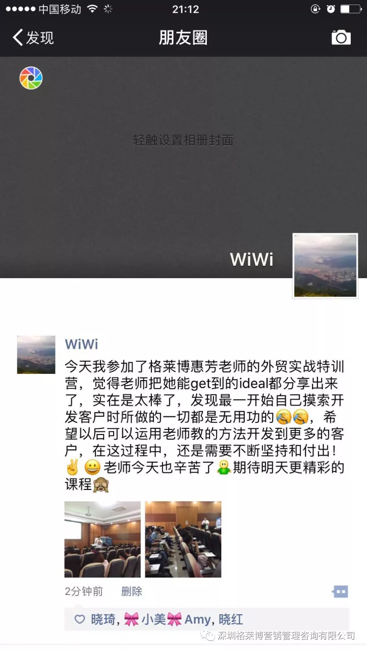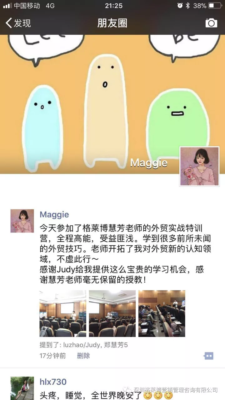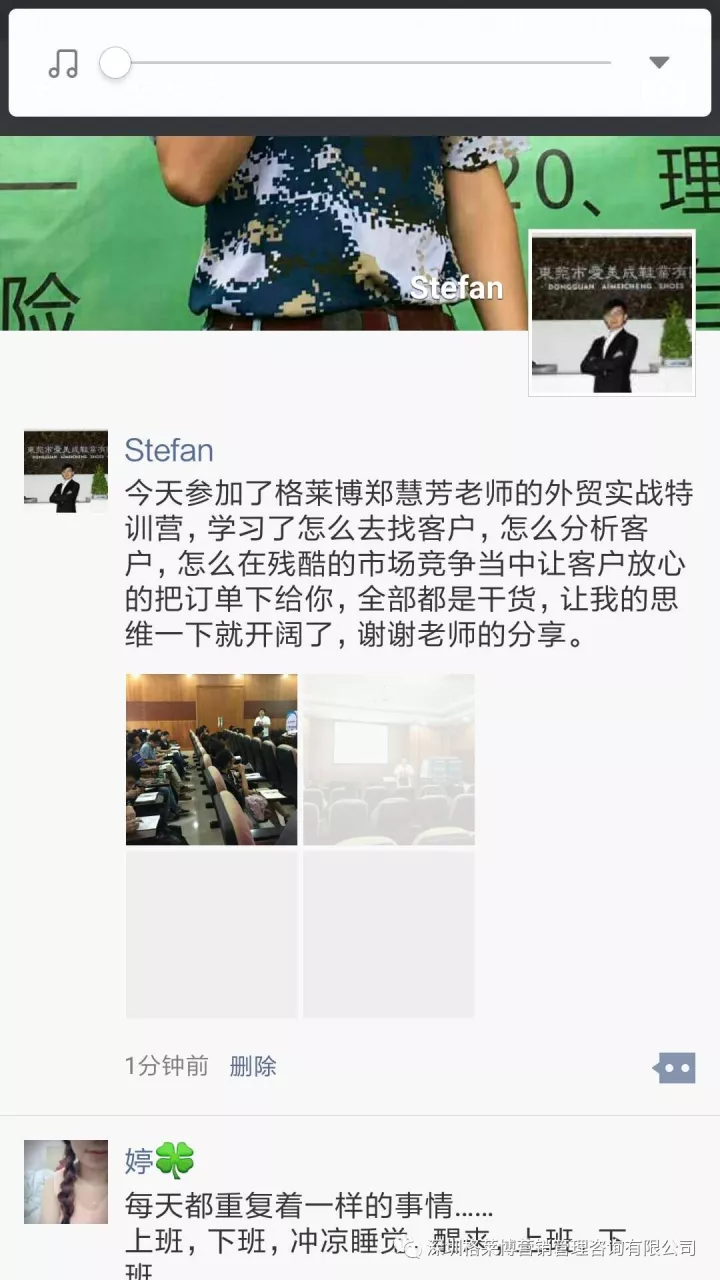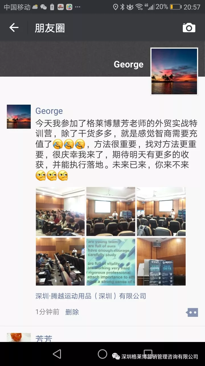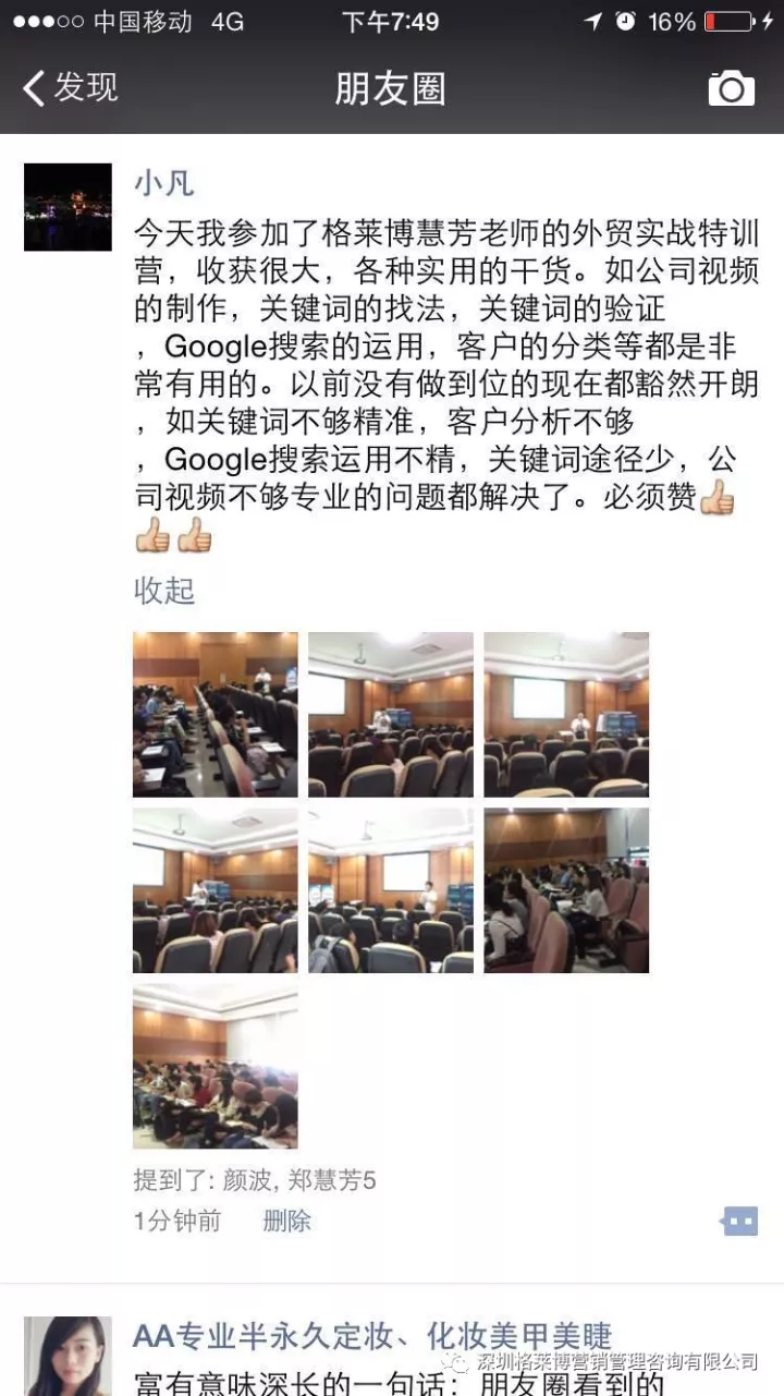 有学员感叹参加了慧芳老师的课程,满满的都是干货,发现自己以前的客户都是捡回来的不是自己去挖掘的,更有学员表示上课之后发现外贸不难做,只是没有找到合适办法,上慧芳老师一节课,少走五年弯路,真的超值。烧脑的一天,但是畅快淋漓,一个个活生生的黑科技呈现在眼前,庆幸遇到郑老师!!!亲爱的学员们,一个亿在等着你们!加油。