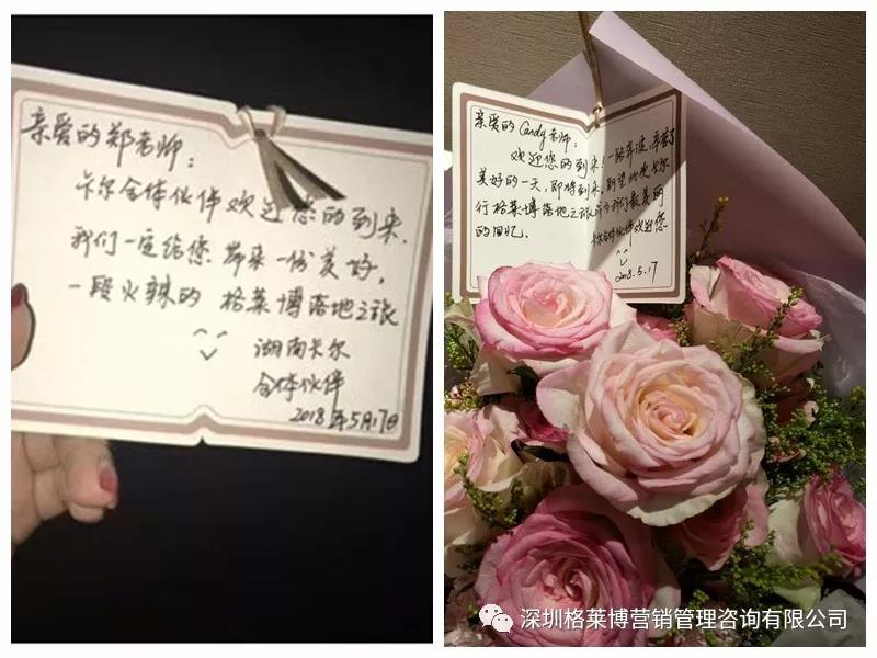 517日晚11:50分郑老师一行抵达长沙南站,卡尔团队给每位老板准备了鲜花,并由卡尔老板Carson亲自送到郑老师和每位来访老板手中。