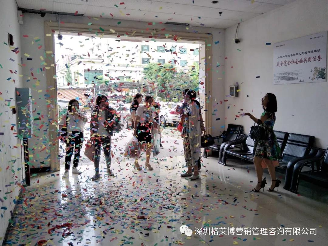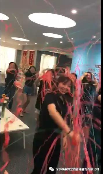 惊喜二:大家乘梯上楼,到达卡尔公司门口,可是里面一片漆黑,正当大家疑惑不解之时,音乐起,灯光起,卡尔全体业务员集体起舞,跳起了时下流行的抖音嘟拉舞……哇咔咔……更大的惊喜还在后面呢!一曲舞蹈跳完,全体业务员向郑老师一行抛出彩色的手抛彩带,哇哦!简直不要太棒了!
