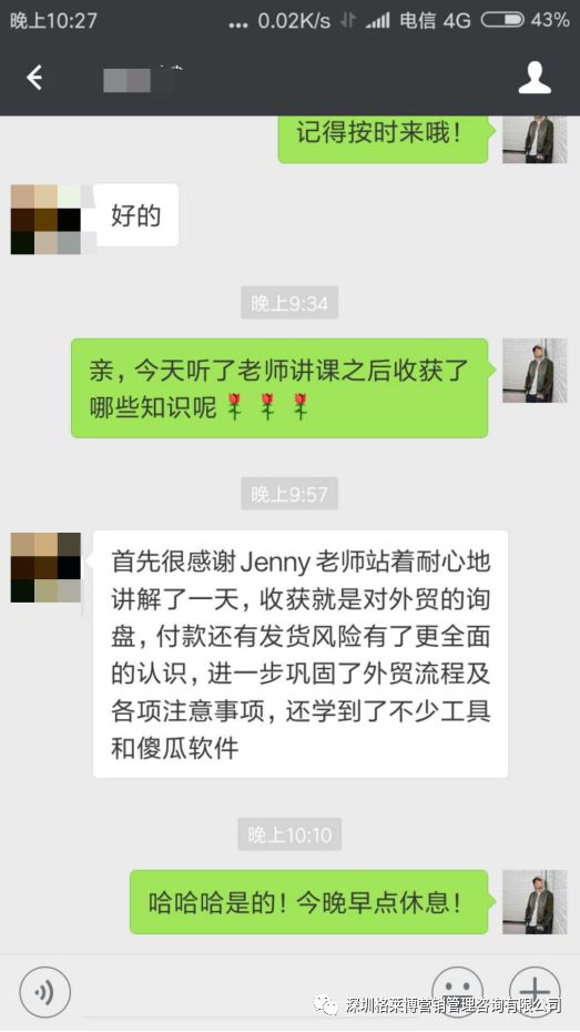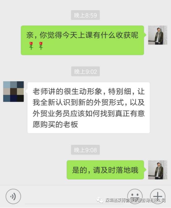 两天的课程听下来,真的是受益匪浅!更有学员表示学习之后就掌握了一个外贸业务员的必备能力,一系列的流程,认识到新的外贸模式,把学到技巧利用到实际操作中,赢取大订单。