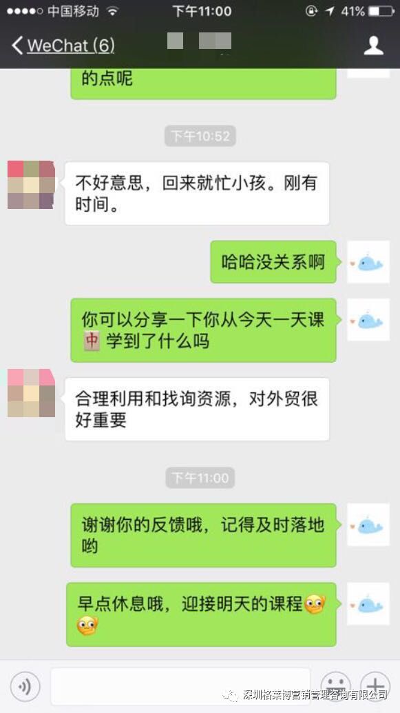 下午老师开门见山讲到了大部分学员的痛点, 如何有效跟进询盘:客户跟进难点有哪些?如何有效根据客户资料的整理归档有序有效的跟进客户?哪些跟进技巧和谈判技巧可以快速促成订单? 客户接待及拜访技巧,电话沟通技巧:客户来访前如何做相关准备工作?来访时如何展示公司实力及产品优势,如何进行谈判,如何招待好客户? 来访后需要有哪些后续跟进工作?除了等客户来访,我们该如何主动拜访客户?我们格莱博金牌讲师谭广兰老师在课堂上利用举一反三的例子,一步一步攻破问题,给学员带来破解方法与对策。
