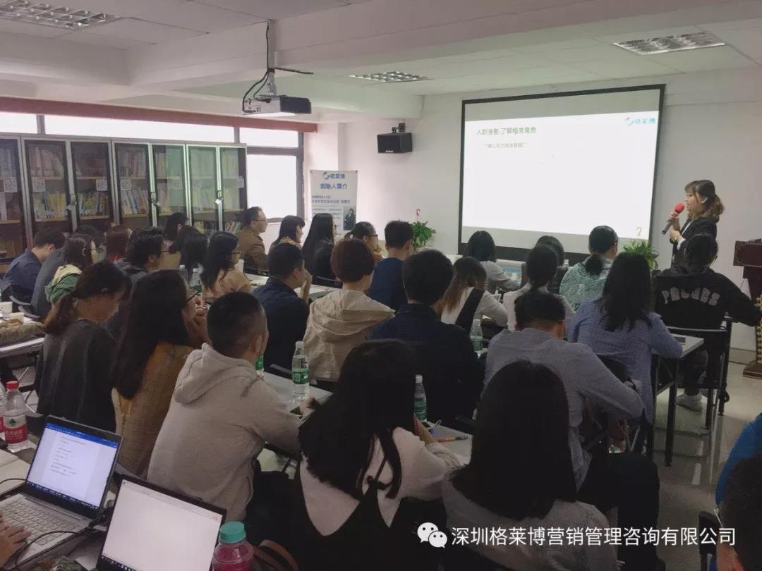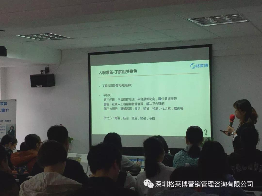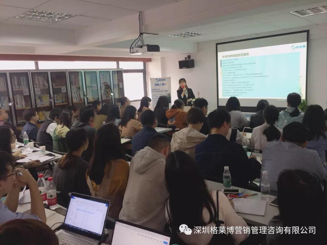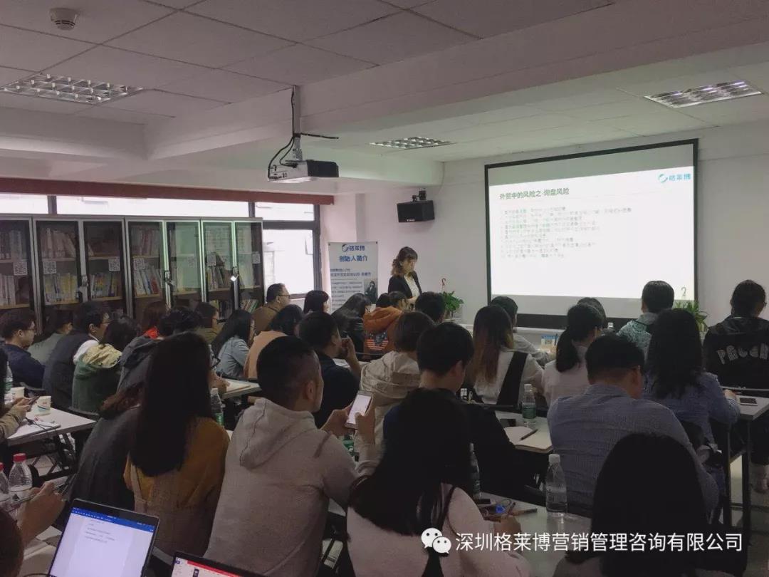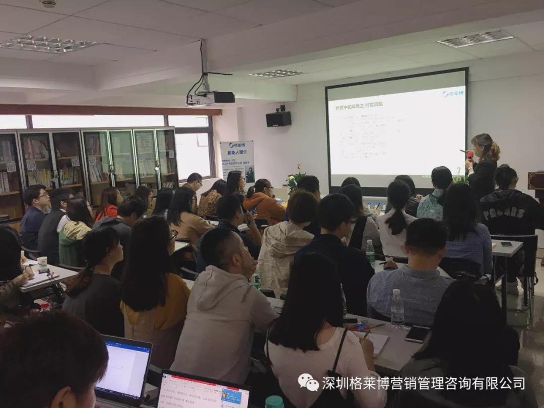 上午课程老师就给各位外贸学员们解析了优秀外贸业务员的必备素质,开拓了大家的思维,给学员们罗列了业务员如何从一个新人快速蜕变成行业精英的必备潜质和方法,教你怎么弄懂七大特质,再从当前主要的贸易形式进行剥析,分析了B2B,B2C,C2C,C2B四大火热模式,让你真真正正的理解其中的含义,不再盲目。还带来了外贸人容易中招的询盘风险,从外贸实际中的风险邮件实例,发货风险,付款风险等等等,任何一个都会让人头大的潜在危险,我们的jenny 老师都为你一一解析,并且为伙伴们带来了行业风险防范的原则和方法,外贸人员的心态如何进行调整,业务开展的基础准备有哪些,自己本身和客户对产品的常见疑虑怎么解决,常见客户的FAQ,行情了解的途径,只有理解了这一切,才能在最快拿到大订单大客户,只有在这里,在格莱博才能学到的喔!