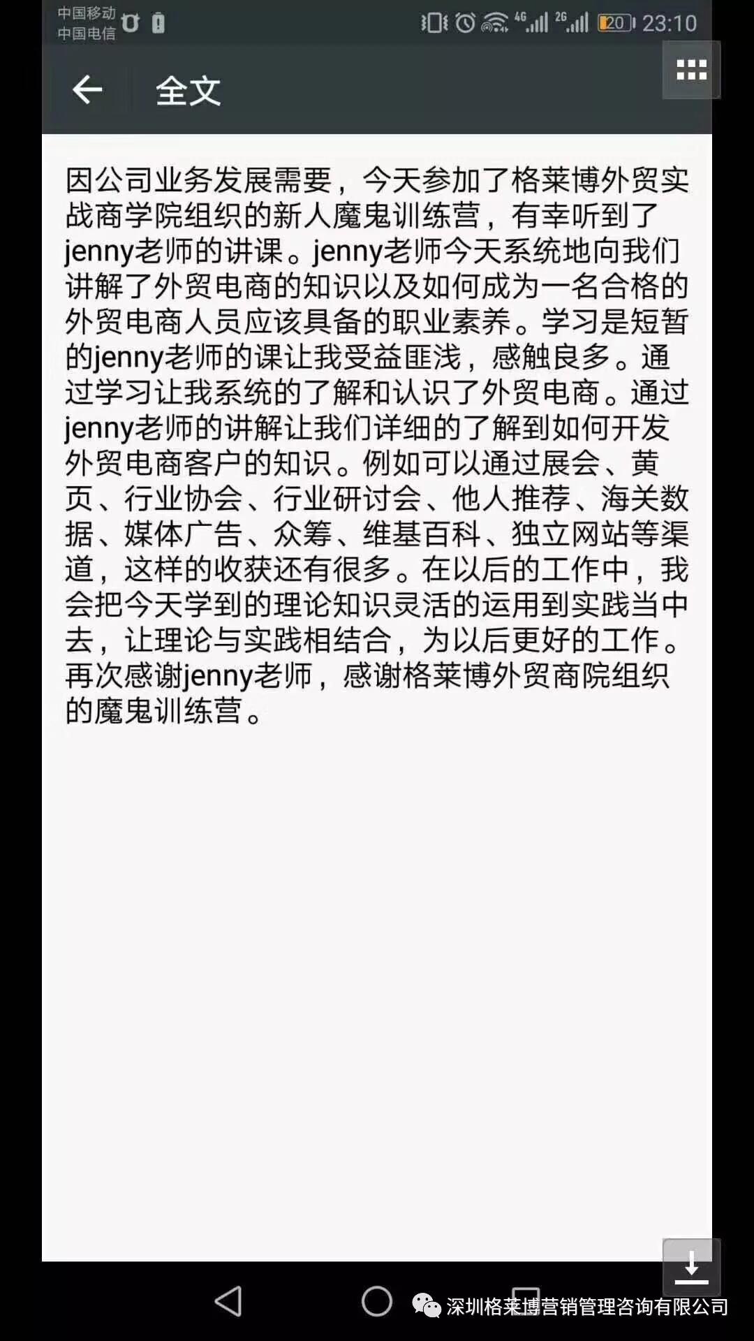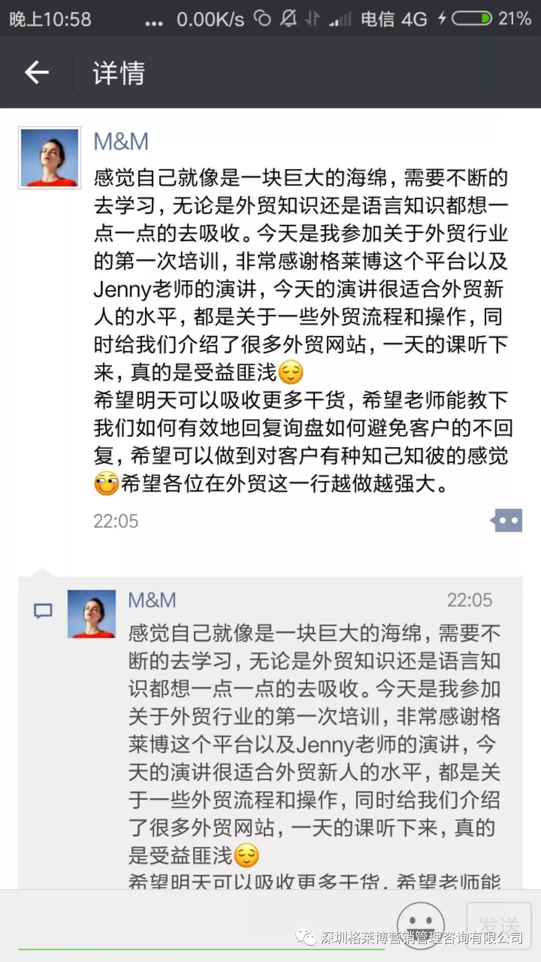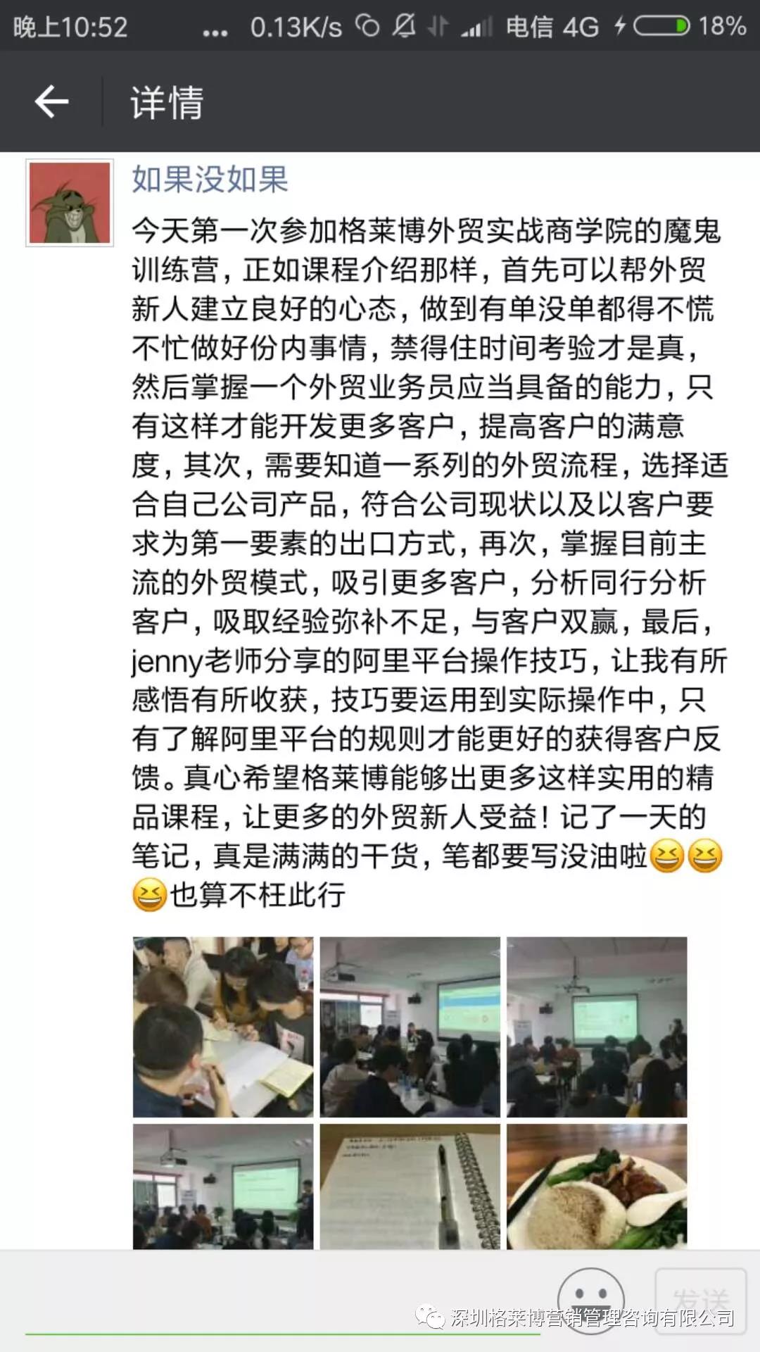 相信这次课程是外贸路上的一个转折点,回去抓紧时间落地,赢取大订单!感谢格莱博,感谢讲师团!