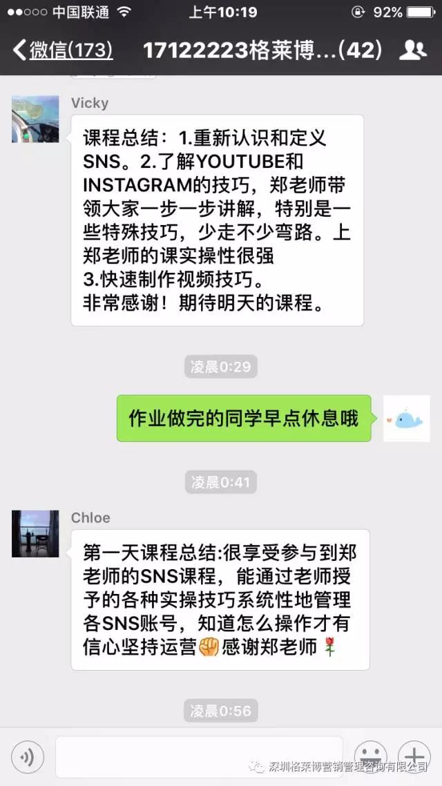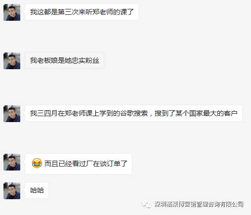 很多学员都是第一次接触到SNS社交网络,一天的课程就已经是非常的烧脑了,为了能够消化为了能够学到精华,到了深夜一点多还在坚持完成作业,还在群里提出自己的问题,并且进来点赞的客户资源还是没有停下,这一幕多么深刻,你们都是一定会拿大订单的外贸人。小编相信你们的付出和努力都是非常值得了,因为把SNS运用好了,一定会有客户主动找上门。大家都知道互联网的传播力和影响力是最快的,同时的SNS社交营销也是见效最快的。利用好SNS社交网络,外贸订单绝对会滚滚来!也有学员表示上了老师的课真的可以直接拿下订单的,就是那么有效果那么强势!