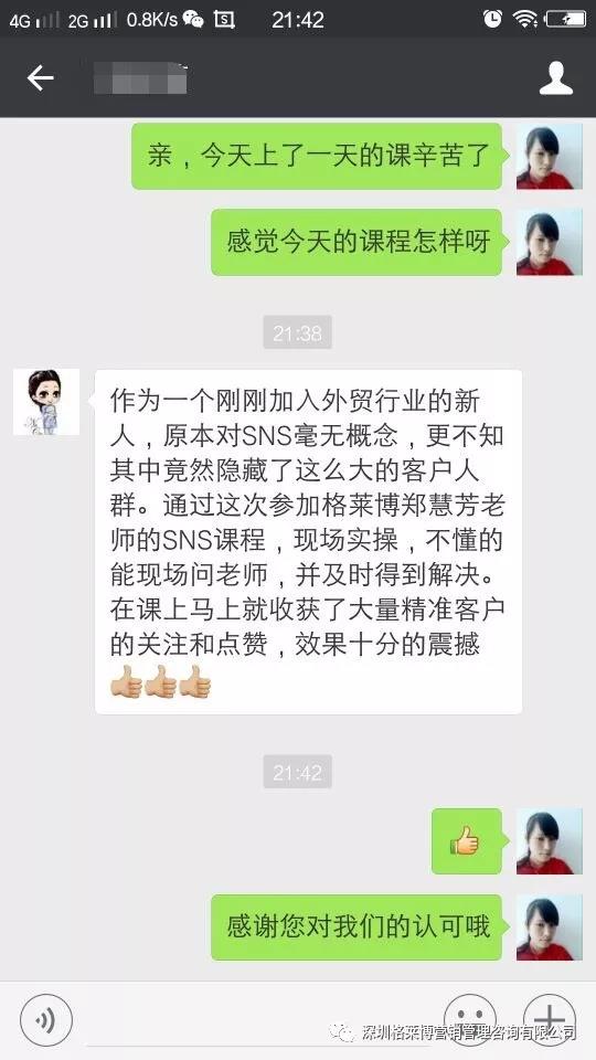 课程后,大家纷纷发来感想,相信这次课程是他们外贸路上的一个转折点,回去抓紧时间落地,赢取大订单!感谢郑老师!
