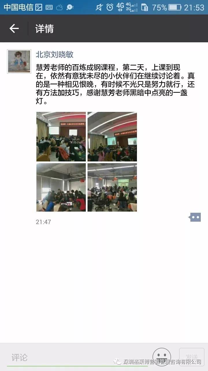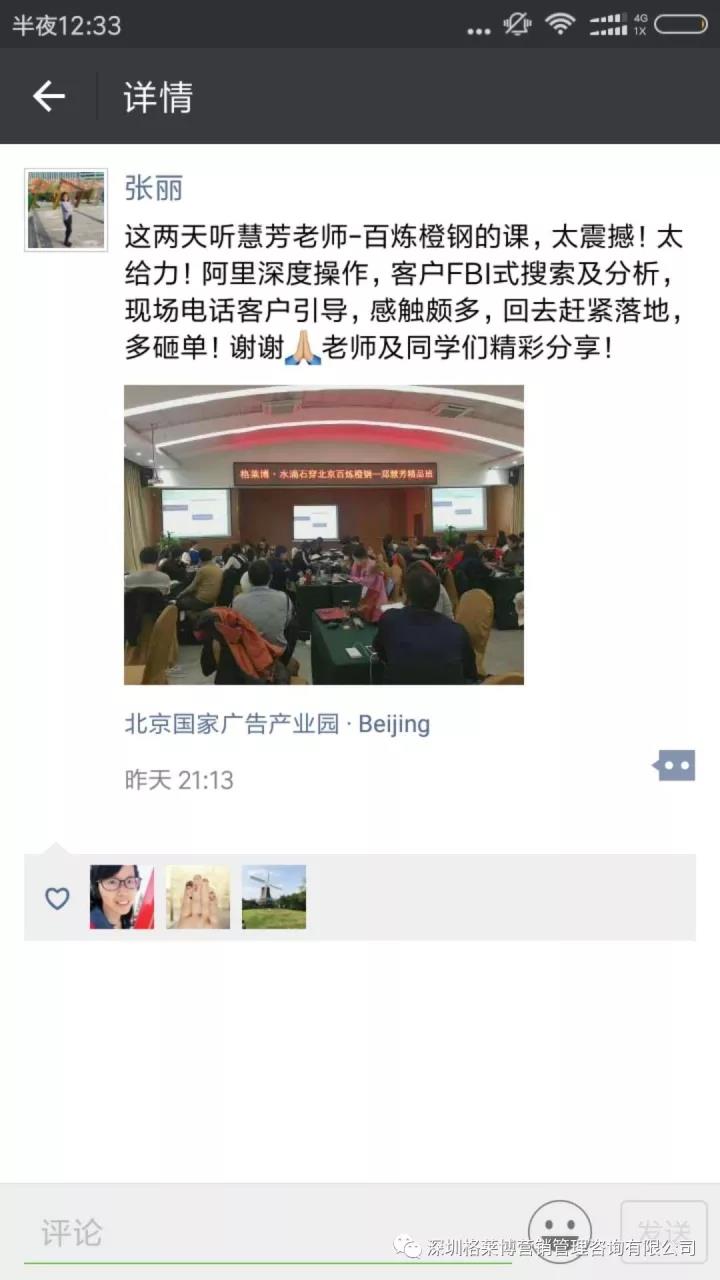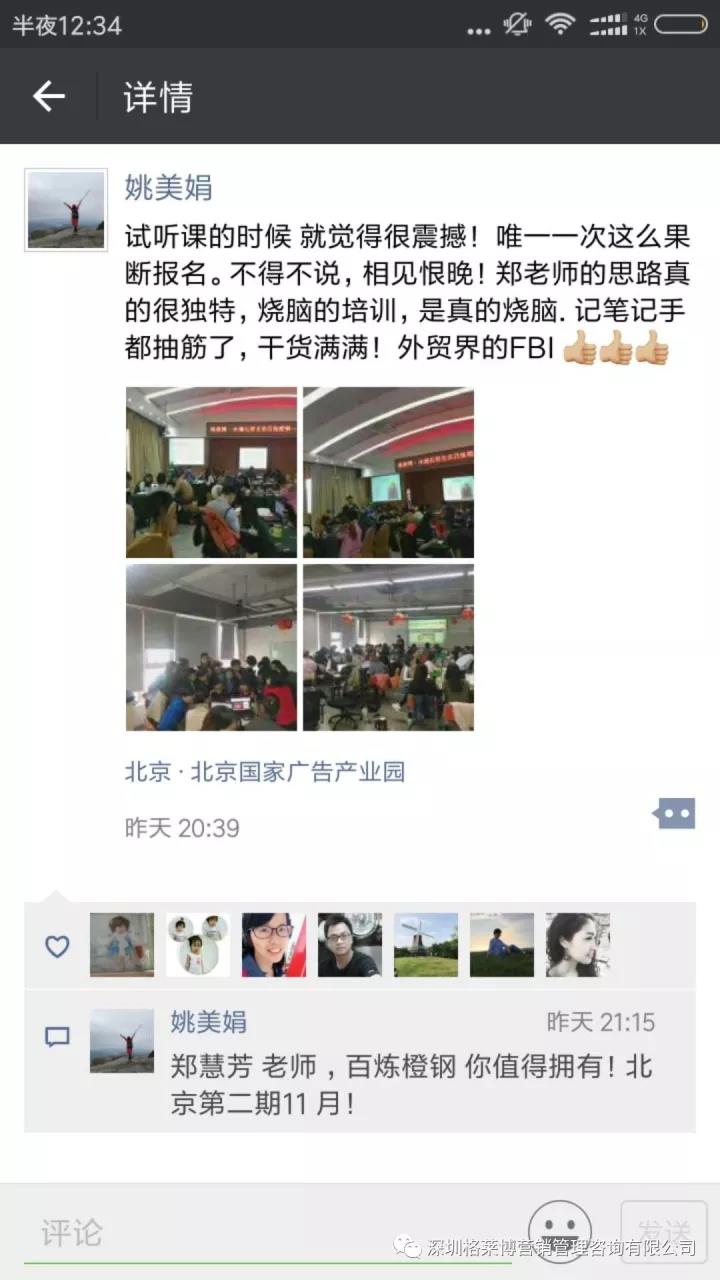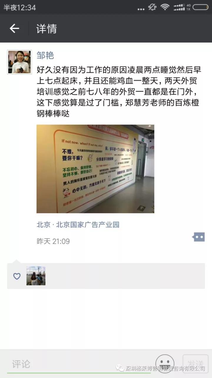 在大家的期待下格莱博•水滴石穿【北方大区北京区域 百炼橙钢-郑慧芳专场第一期】在北京国家广告产业园开课啦!你们很幸运,作为郑老师新推出课程的第一批学员,能够让你们在外贸路上走的更快更前喔!