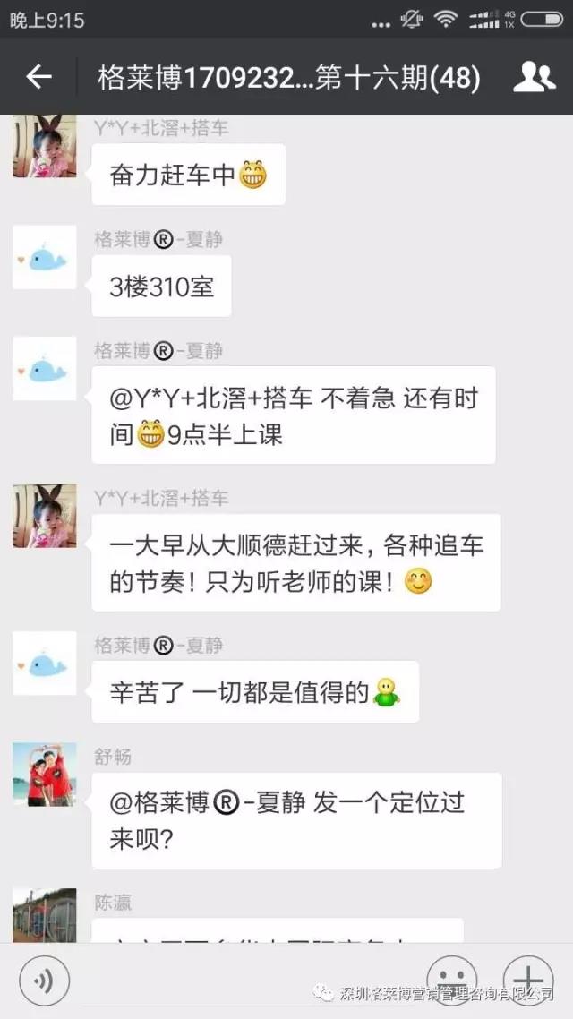 课程的第一天早上,开始下雨,有学员早上六点就出发参加课程,怕错过一分钟的精彩内容。还有学员到教室,衣服都打湿了,课程中还有从佛山东莞过来的甚至还有七八个月的孕妈妈来参加。哪有天生的成功者,只是把别人聚会的时间的用在了学习上。