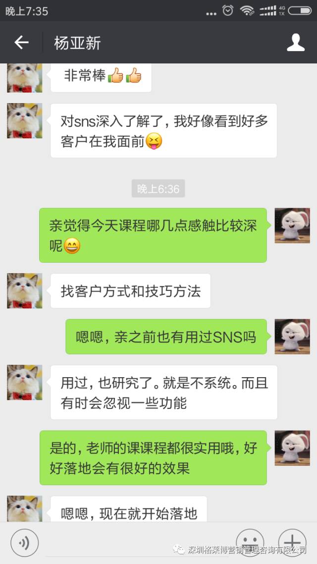 有不少学员表示之前都用过SNS,也研究过,但是都不系统,而且有时会忽视一些功能,这次课程让大家对SNS有了更深入的了解,还有小伙伴说好像看到好多客户在自己面前。