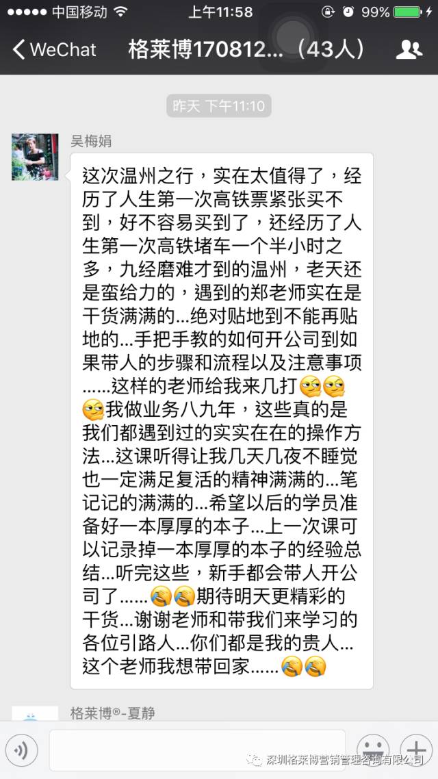 郑老师手把手教如何开公司,如何带人。每个步骤和流程以及注意事项都非常清晰明了。学员们纷纷表示听完后新人都可以带人开公司了,甚至有学员表示真想把这样的老师带回家。