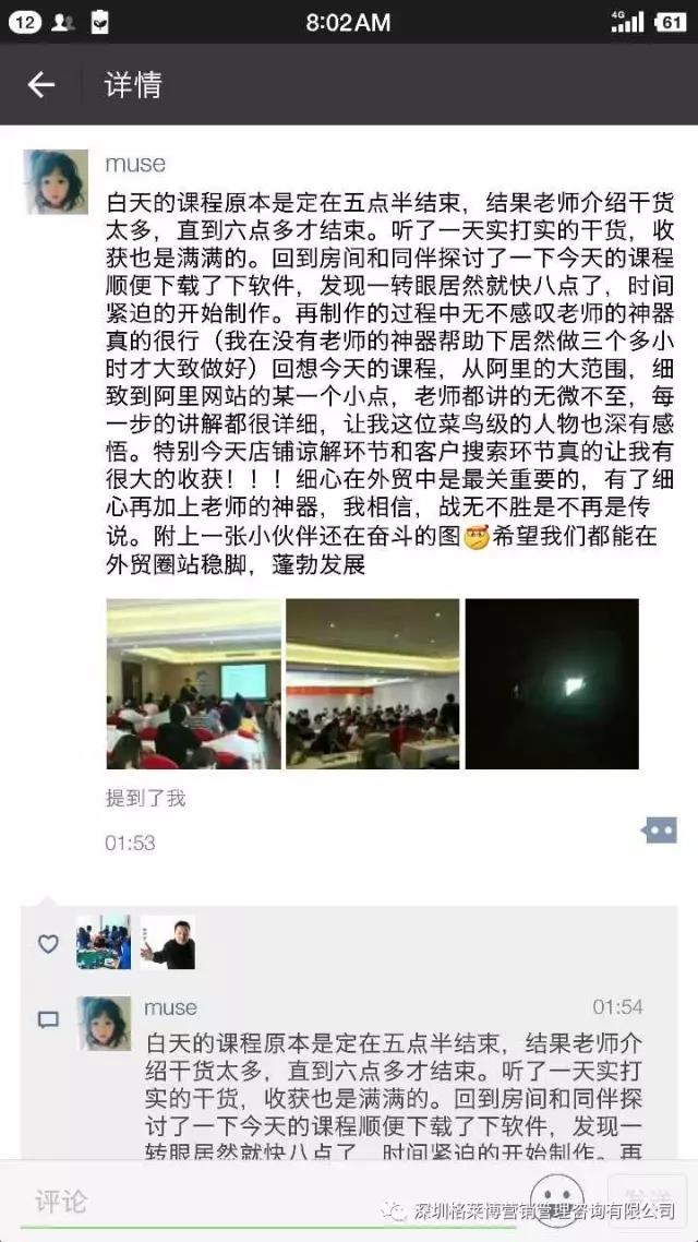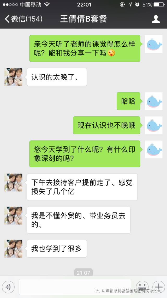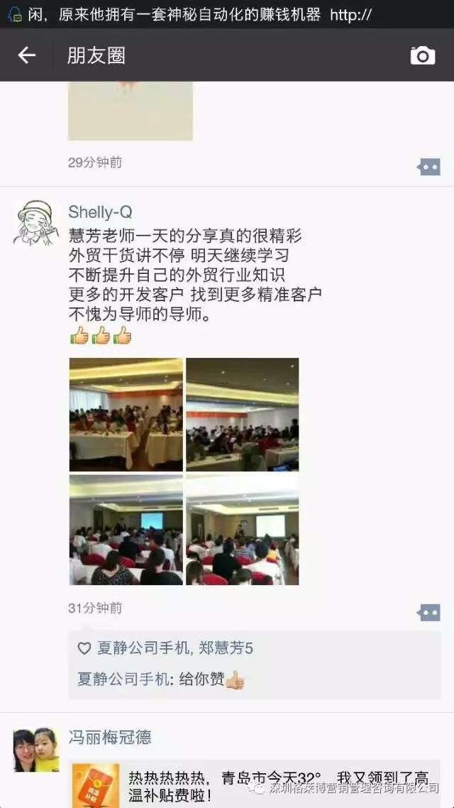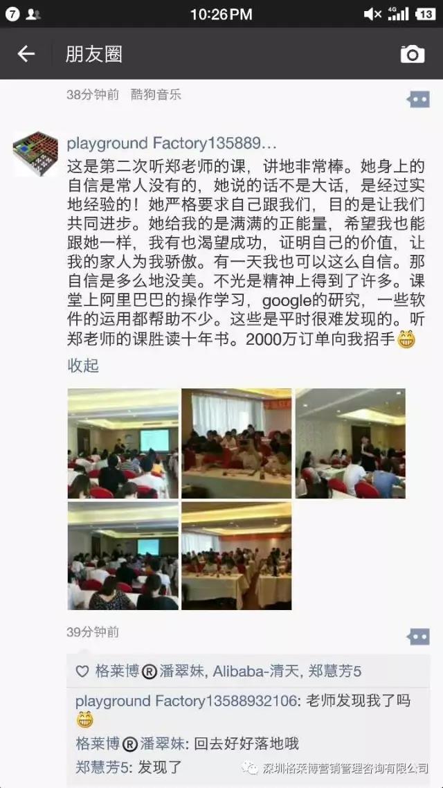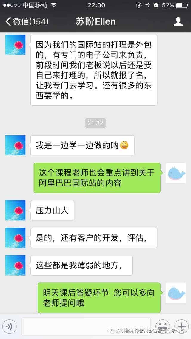 有学员表示老师讲授了如何根据阿里巴巴后台数据很到位的分析出客户的情况,对一些信息的汲取,结合各种方法开发客户,news letter(新颖的沟通方法),Google map也是很有趣的沟通方法……郑老师教给大家的是如何更有趣的使订单滚滚来。还有从阿里的大范围,细致到阿里网站的某一个小点,老师都讲得非常细致,每一步都很详细。特别是今天店铺链接环节和客户搜索环节真的让大家收获很多。