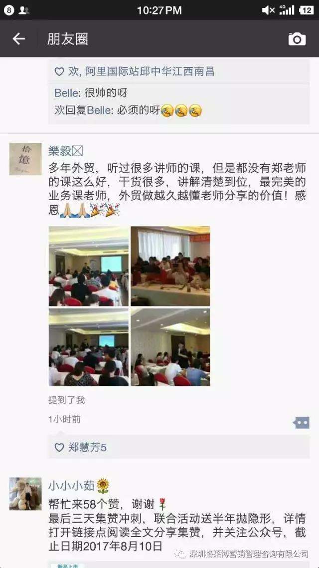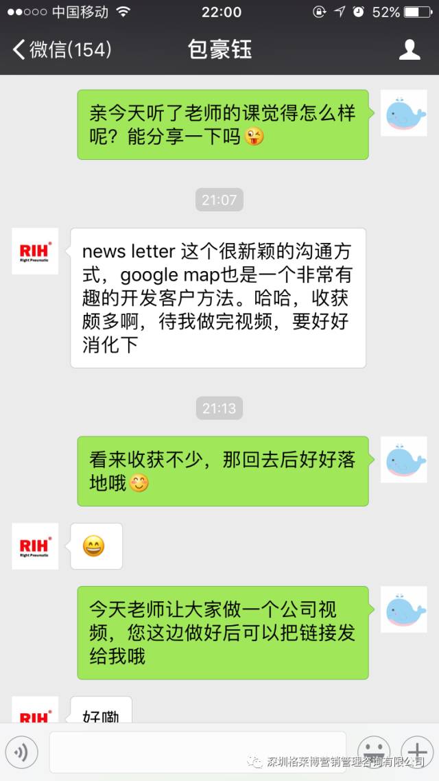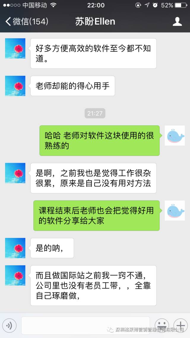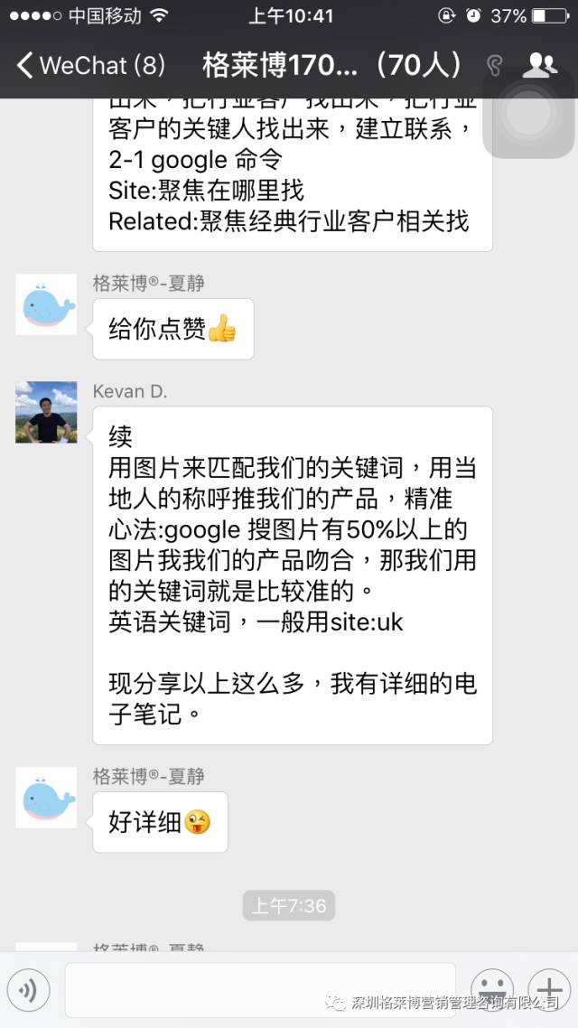 两天的课程,如何发布阿里巴巴产品标题,获得更多点击;如何写阿里巴巴产品详情,获得更多反馈;如何找到更多适合自己的关键词,五千一万关键词都不在话下。还有通过谷歌地图,谷歌图片深挖客户,怎么插入视频,如何做电子报等,这些实战性很强的知识,学完可以马上落地,让大家有了更清晰的思路,更明确的方向,更丰富的方法。